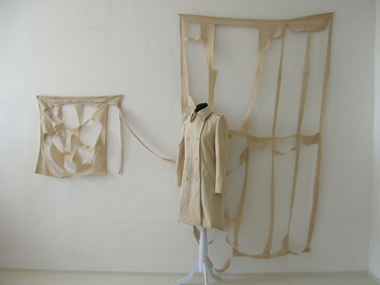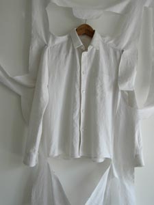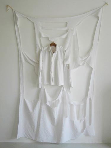 shirt-1/09 2009 bed sheet, thread, dress hanger, button about 230x125x12cm
